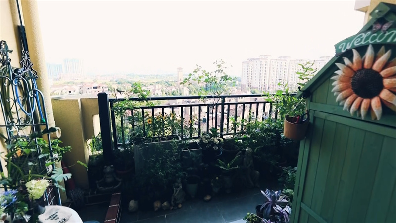 阳台绿植作为阳台的核心,设计师利用花格、置物架、支架及盆器让整个阳台的植物错落有致,利用植物花卉拉近人与自然的距离,在一方小空间内通过植物,近距离领略四季变化的魅力,品味生命不同时期的美好。