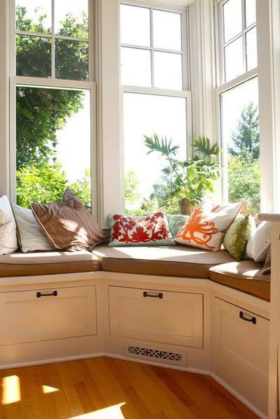 如果飘窗是在客厅或者书房,面积比较大,同时景观比较好的话,强烈建议以地台的形式,把飘窗设计成一个多功能休闲区。