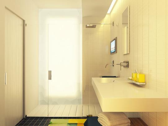 长沙装饰首选金煌点评:玻璃移门设计节省空间和成本,在有效地进行干湿分区的同时也提升了卫浴空间的质感,十分实用。
