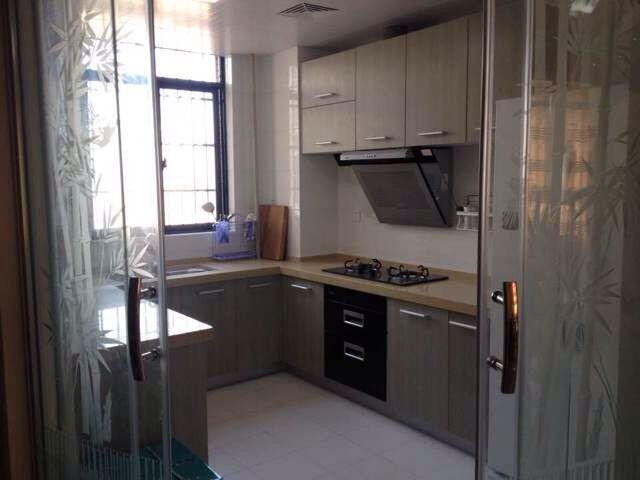 客厅里的樱花送来缕缕清新,厨房玻璃门上映着的竹叶则轻扬出丝丝幽静。与客厅相似,厨房也以简净的白色为主。橱柜、厨具的材质、摆放都从功能性出发,即使是作为点睛之笔的印花玻璃门,也通过天然竹叶纹理的演绎,给人一种洁净、无污的心理暗示,万般周全地营造出了令业主心境安平的生活氛围。