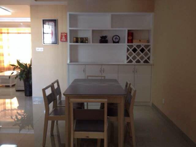长沙装修业主要打造安静祥和的居住空间,自然少不了自然元素的运用。餐厅里一套未经过多加工的餐桌椅,保留了原木的颜色,造型也一如树木的躯干,天然拙朴,似一道连接都市与自然的桥梁,将尘世的热闹与野外的清静巧妙地融合在了一起。餐桌椅不远处放置着一个置物架,既有效地利用了空间,又通过朴实的造型和纯白的颜色延续着那份低调静谧。