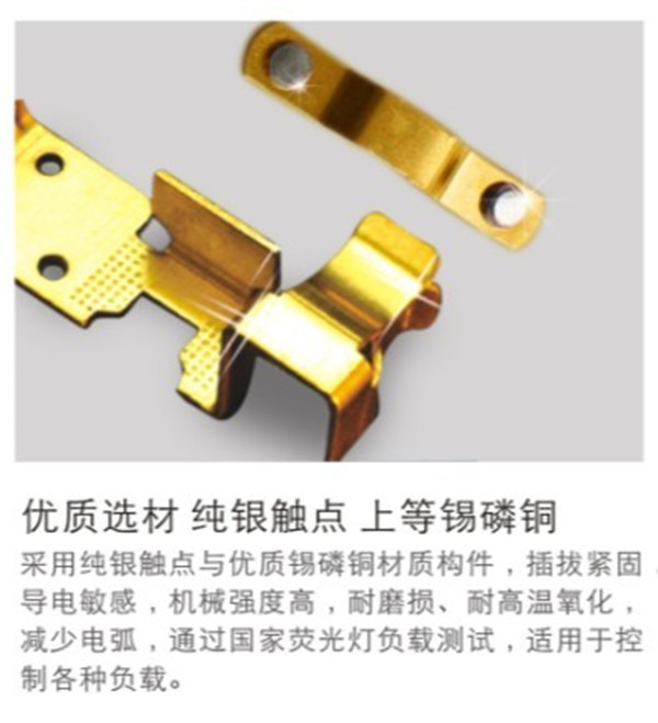 开关结构是纯银的导电能力强,发热量低,安全性能高,触点采用铜质材料则性能大打折扣;插座材料采用锡磷生铜片可得到配合最好的强度、韧性、弹性等指标,比一般黄铜作簧片的插座耐用数十倍,且极少有插板时强烈的电弧烧坏插座的现象;镀金的簧针极难氧化,性能稳定,能保证音质的清晰真实,数据传输的快速准确。
