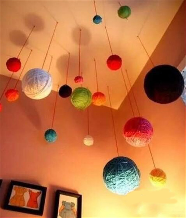 吊在天花板上也是很梦幻的,一个个毛球,像一个个小星球。