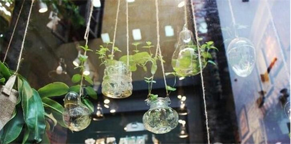 绿植装在形状各异的玻璃容器内,再加上一些小心机,一个生动有趣的绿植小盆栽就出来了。当然的也少不了绿植背景墙,大面积的绿色不仅可以缓解我们的眼疲劳,看上去也很小清新。