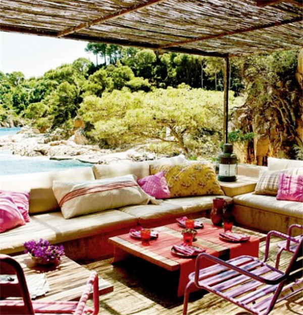 地中海风格代表一种特有居住环境造就的极休闲的生活方式。这种风格装修的庭院,空间布局形式自由,颜色明亮、大胆、丰厚却又简单。其装修设计精髓是捕捉光线,取材天然的巧妙之处。