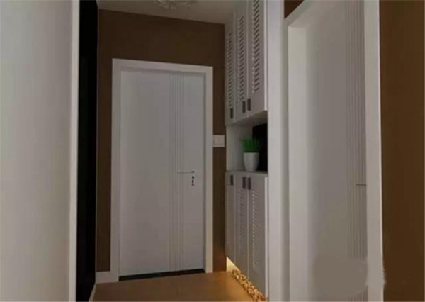 有些家庭,玄关的储物空间少,这时可以将进门玄关做成六个门开的储物柜,很好的将实用与装饰很好的结合起来,不仅空间大了而且整体也很好看。
