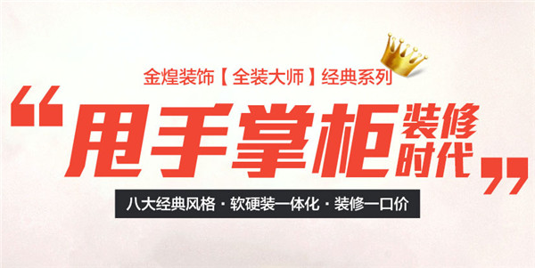 金煌装饰作为湖南全包家装老字号企业,在15年内斩获80万业主好口碑,并成为湖南第一家、全国第四家获得“中国驰名商标”的装饰企业。自成立以来,金煌装饰不断臻善全包家装模式,于10月推出全包家装革命性产品——【全装大师】经典系列,将业主带入“甩手掌柜式”装修时代。