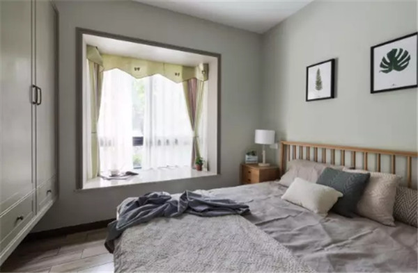 主卧最引人注目的要数床尾的悬空式大衣柜,这种常见于玄关的悬空设计却用于卧室,你们觉得如何呢?反正小编很喜欢,让床尾过道不显拥挤同时,置物也变得更多样。