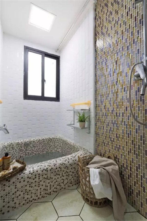 看到这个卫浴室,小编简直惊呆了!放不下标准尺寸的浴缸,设计师就因地制宜地定做了一个。浴缸里放一块石头,有木有几分泡温泉的赶脚?