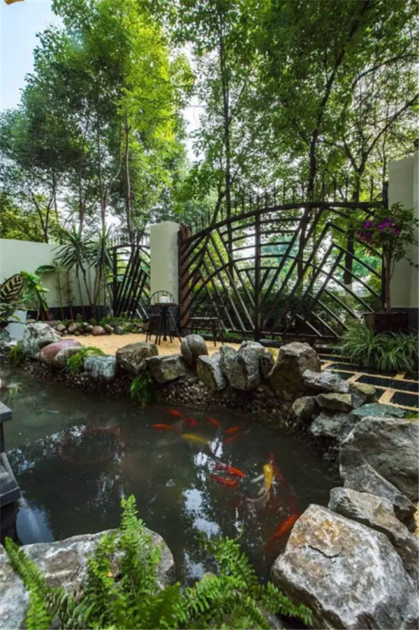 室外还有花园,屋主充分利用,挖了个池子养了几条锦鲤,在一旁喝喝茶聊聊天,都市生活也可以如此悠闲惬意~~~